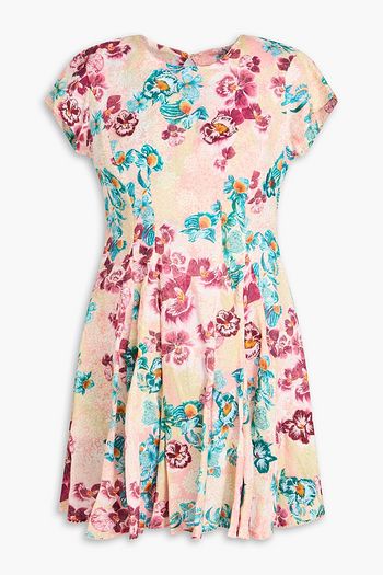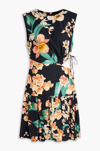 러플 장식 플로럴 프린트 코튼 미니 드레스