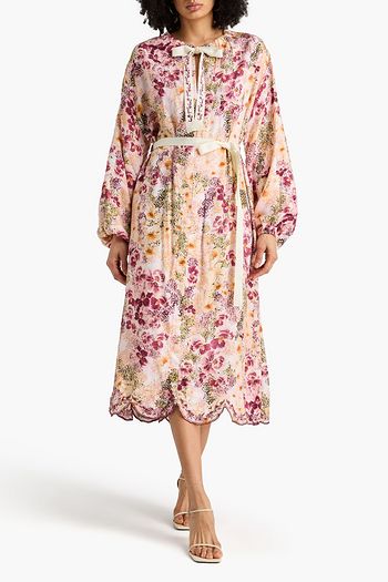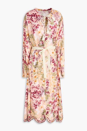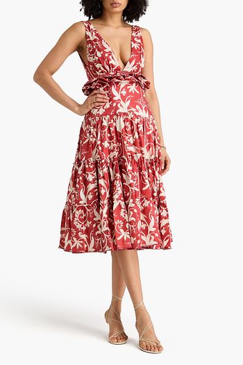 + 넷 서스테인 사바 코메타 러플 프린트 리넨 홀터넥 미디 드레스
