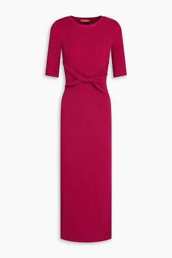 컷아웃 디테일 자카드 니트 미디 드레스