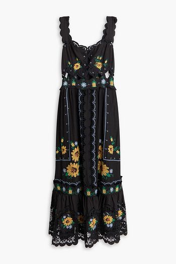 플로럴 프린트 코튼 보일 티어드 미디 드레스