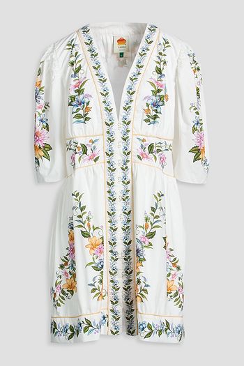 비즈 장식 프린트 필 쿠페 코튼 미니 드레스