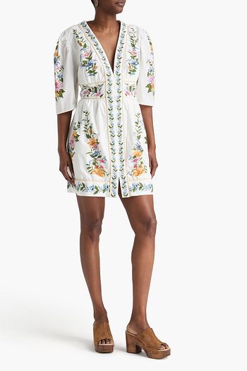 브로드리 앙글레즈 코튼 벨티드 미니 드레스