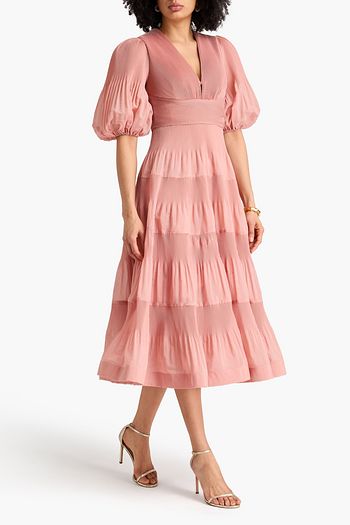 플루티드 레이스 패널 실크 조젯 미니 드레스