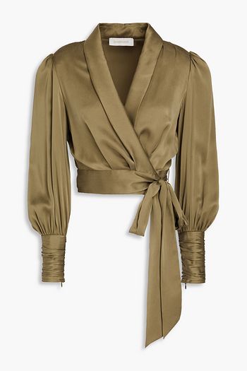 더블 브레스티드 울 실크 혼방 트렌치 코트