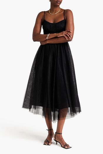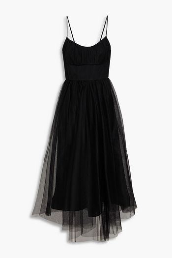 아플리케 튤 트리밍 벨벳 미디 드레스