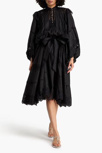 스캘럽 디테일 기퓌르 레이스 코튼 혼방 미니 드레스